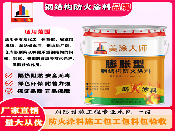 室外超薄型钢结构济阳防火涂料是一种由复合材料、阻燃材料、防火填料等组成,并选用最新型的阻燃剂、发泡、发炭、催化剂等加工而成的新型济阳防火涂料。该涂料涂层薄、用量少、耐火时间长,粘结力强,耐候、抗冲击、耐冻融性好。并具有较好的耐化工大气腐蚀性,涂层遇火时迅速膨胀增厚,形成发泡致密、均匀的隔热层,延长了耐火时间,从而达到防火保护作用。耐火时间根据等级不同可达0.50 h -2.00 h不等。